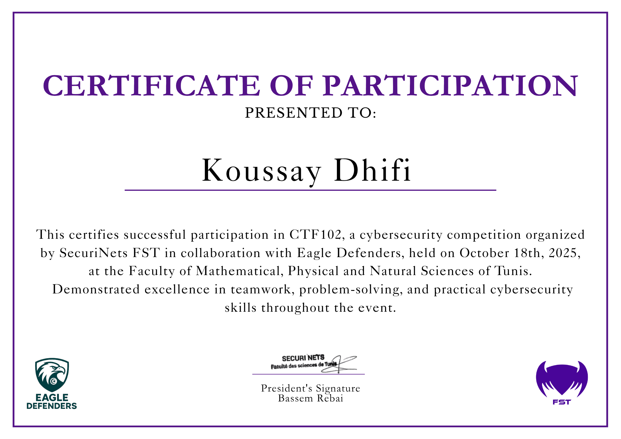 Welcome! Here’s a list of certifications I’ve earned over time, from participation certificates to professional ones like eJPT. Each certificate can be viewed or downloaded.