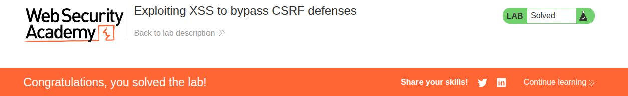 This is a writeup for the 24th lab within the XSS PortSwigger series titled Exploiting XSS to Bypass CSRF Defenses.