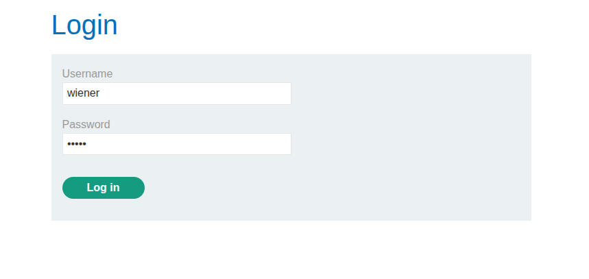 Let’s connect to the account using the credentials provided by PortSwigger: wiener:peter, as shown in the following image.